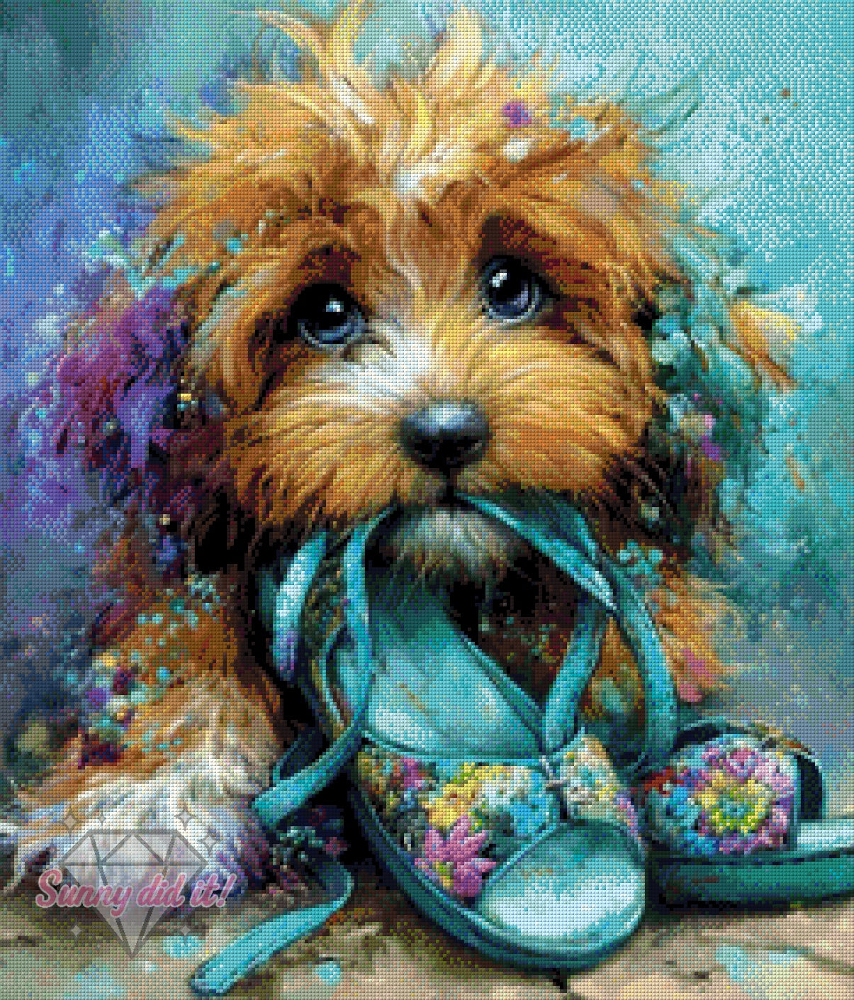 In der Vorschau siehst du das bereits gepixelte Motiv in einer Größe von 60x70 cm mit 130 sorgfältig abgestimmten Farben – ideal für alle, die Wert auf liebevolle Details legen.