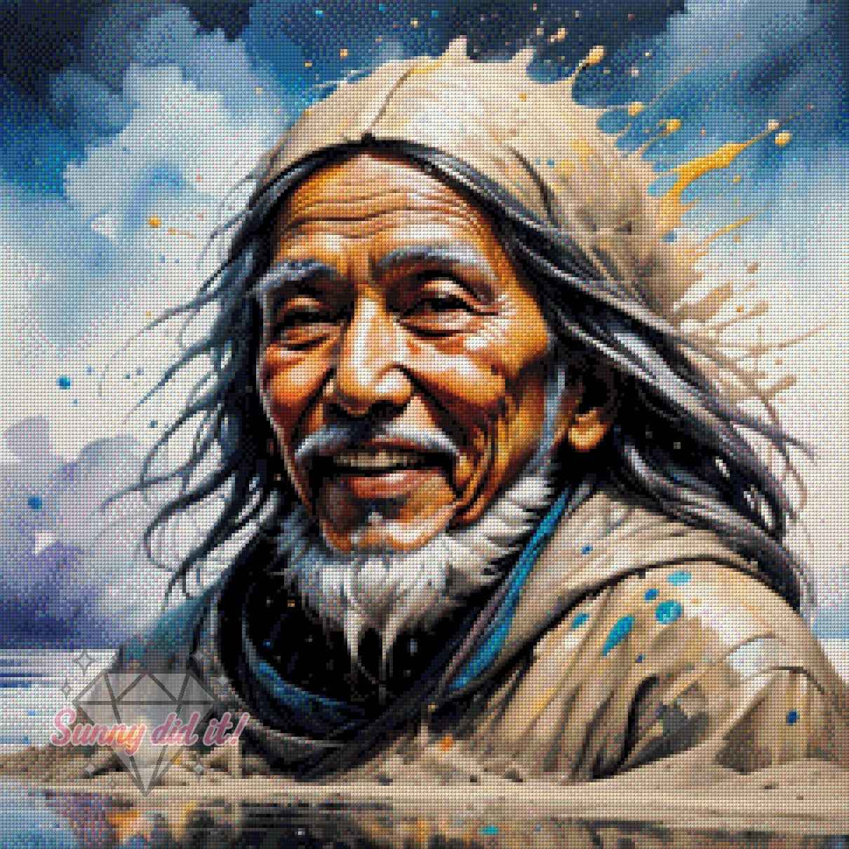 In der Vorschau siehst du das bereits gepixelte Motiv in einer Größe von 60x60 cm mit 130 sorgfältig abgestimmten Farben – ideal für alle, die Wert auf liebevolle Details legen.