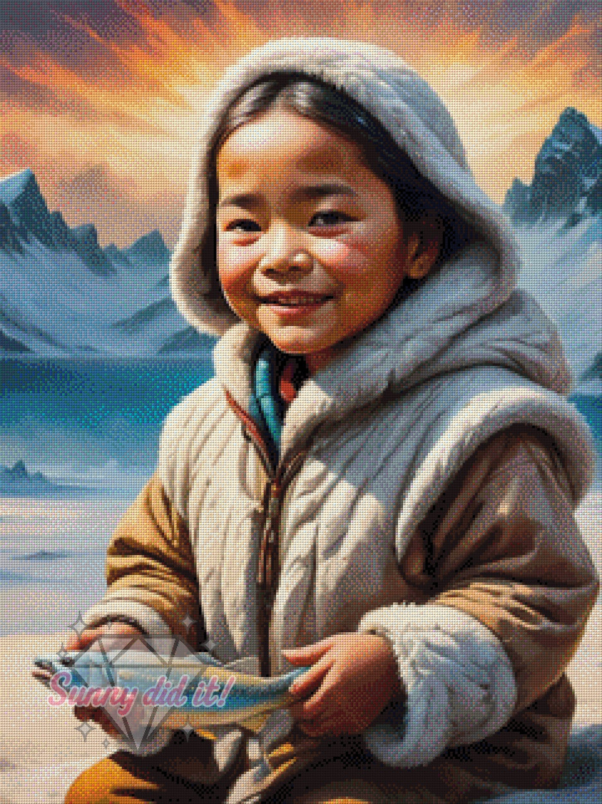 In der Vorschau siehst du das bereits gepixelte Motiv in einer Größe von 60x80 cm mit 135 sorgfältig abgestimmten Farben – ideal für alle, die Wert auf liebevolle Details legen.