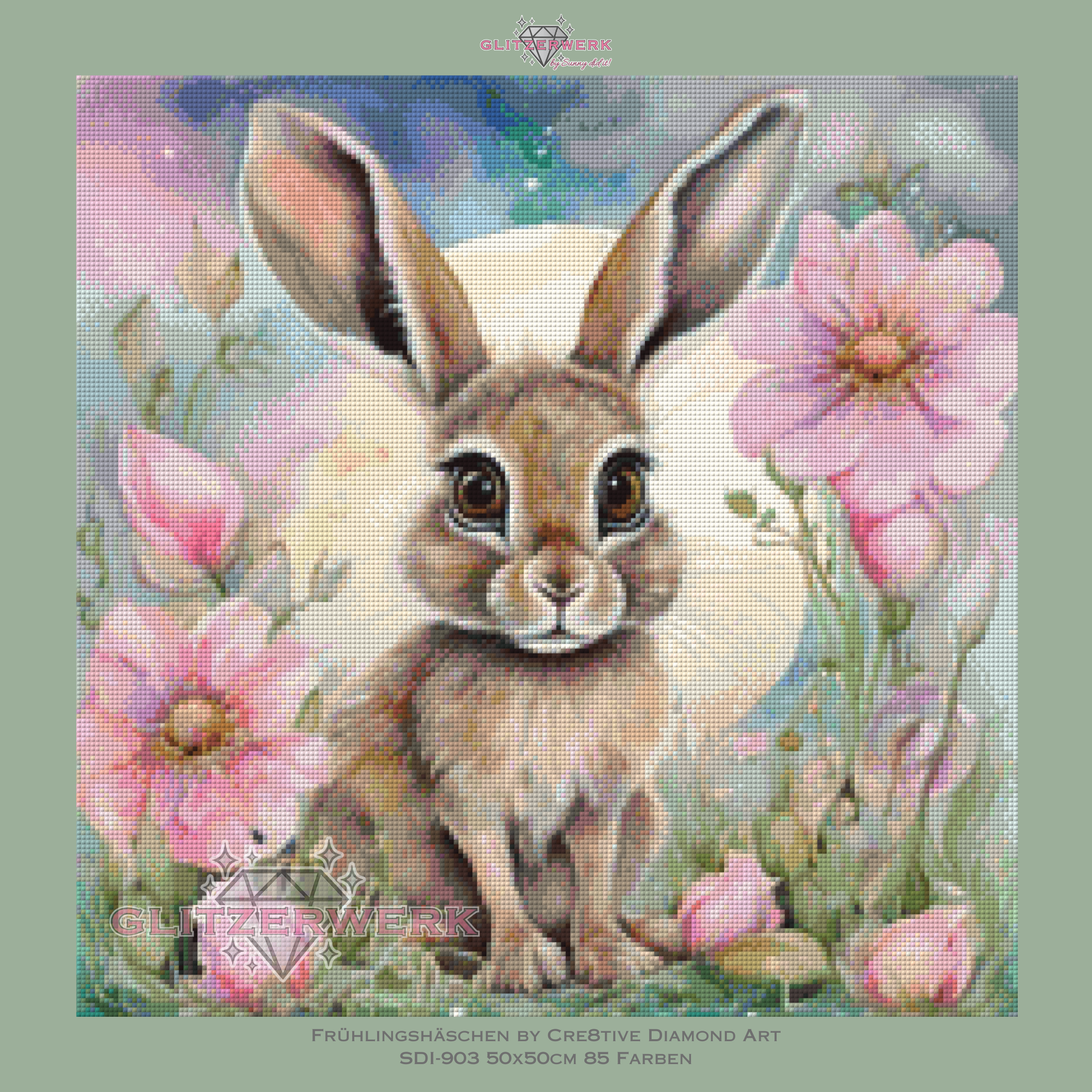 Frühlings-Häschen by Cre8tive Diamond Art 50x50cm 85 Farben