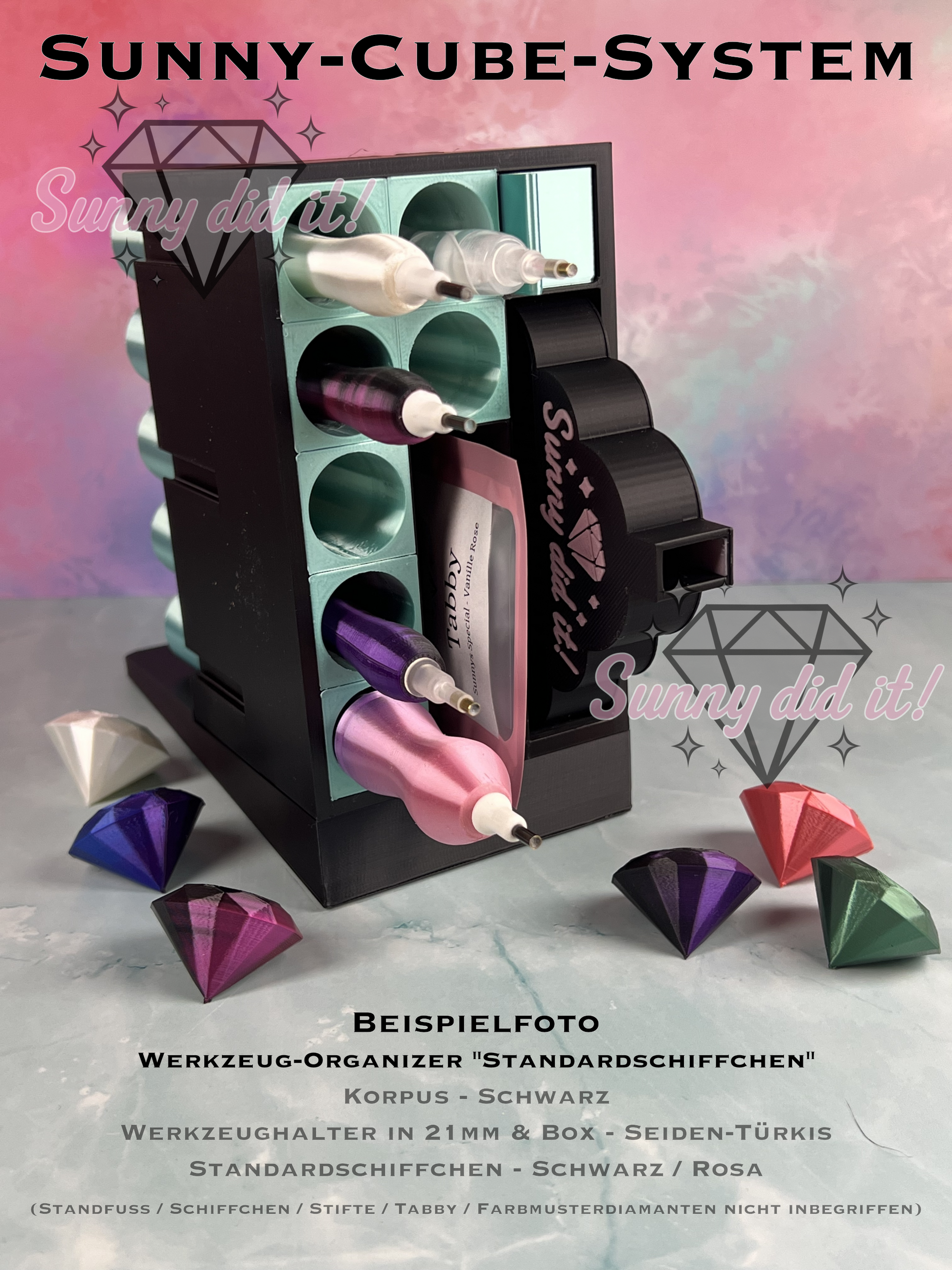 Der Sunny-Cube Werkzeugorganizer ist die ideale ErgĂ€nzung zu deinem Sunny-Cube-System. Er sorgt fĂŒr eine perfekt organisierte ArbeitsflĂ€che und bietet Platz fĂŒr deine wichtigsten Diamond-Painting-Werkzeuge, Stifte und Zubehörteile.